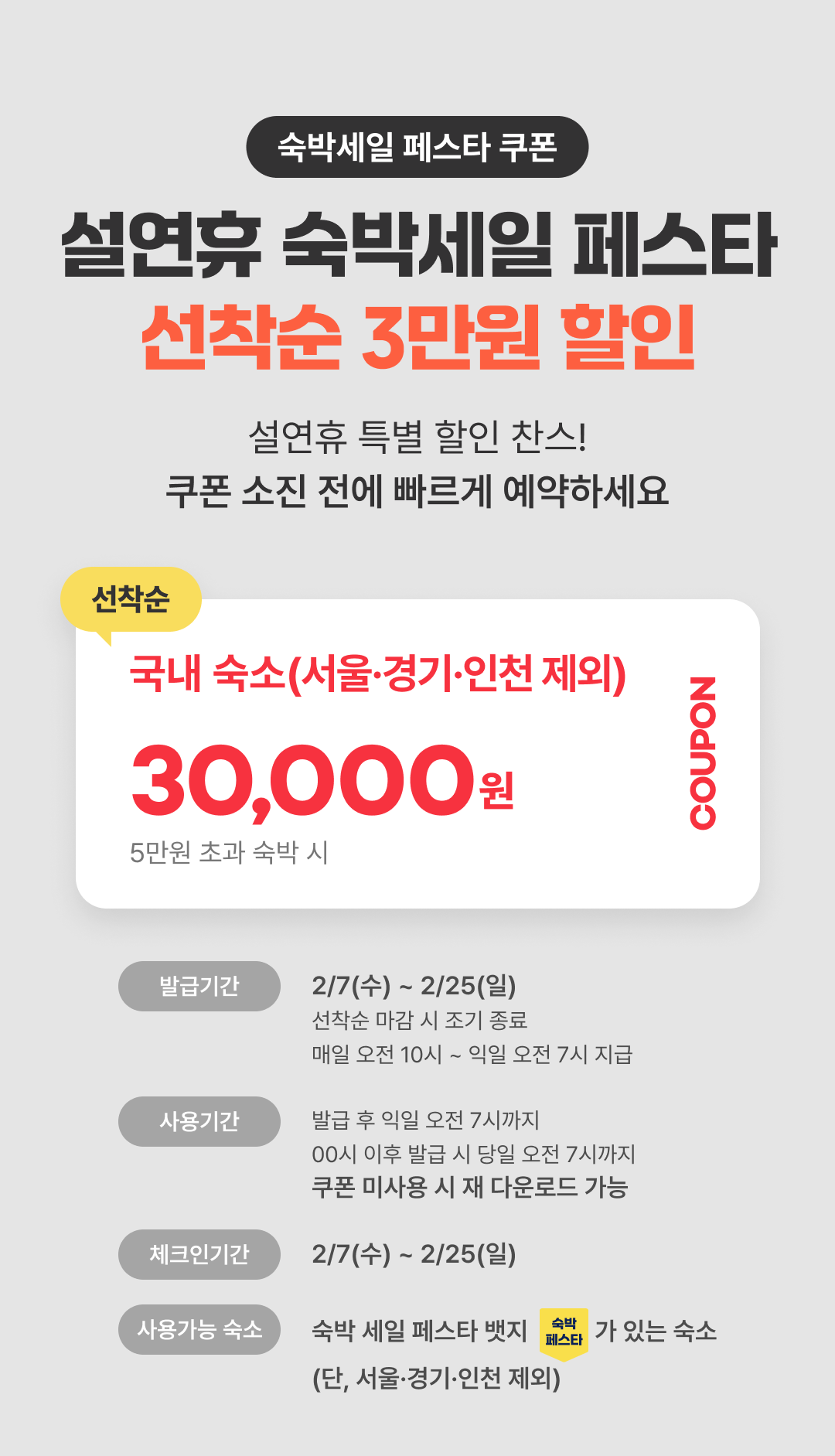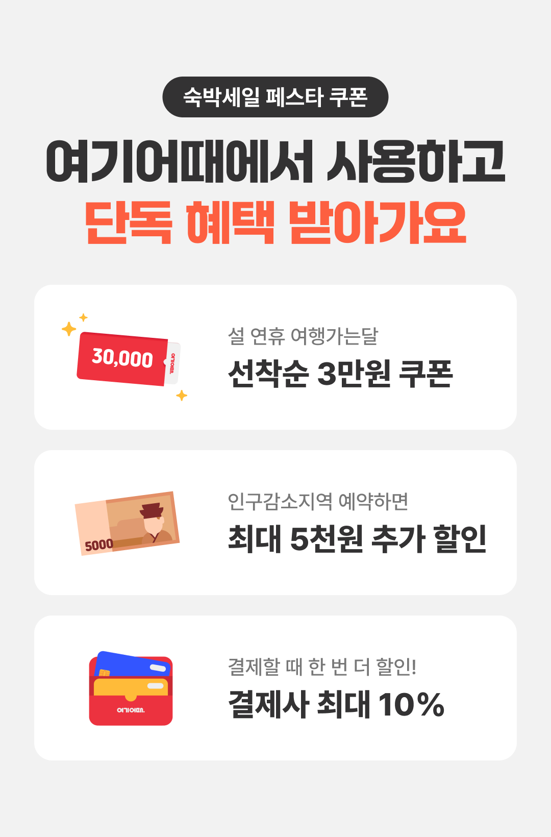 (주)여기어때컴퍼니는 [2024년 2월 숙박 할인권 지원 사업]의 숙박할인 쿠폰 발급 및 사용을 위해 아래와 같이 개인정보 수집 및 이용에 대한 동의를 받고 있습니다.