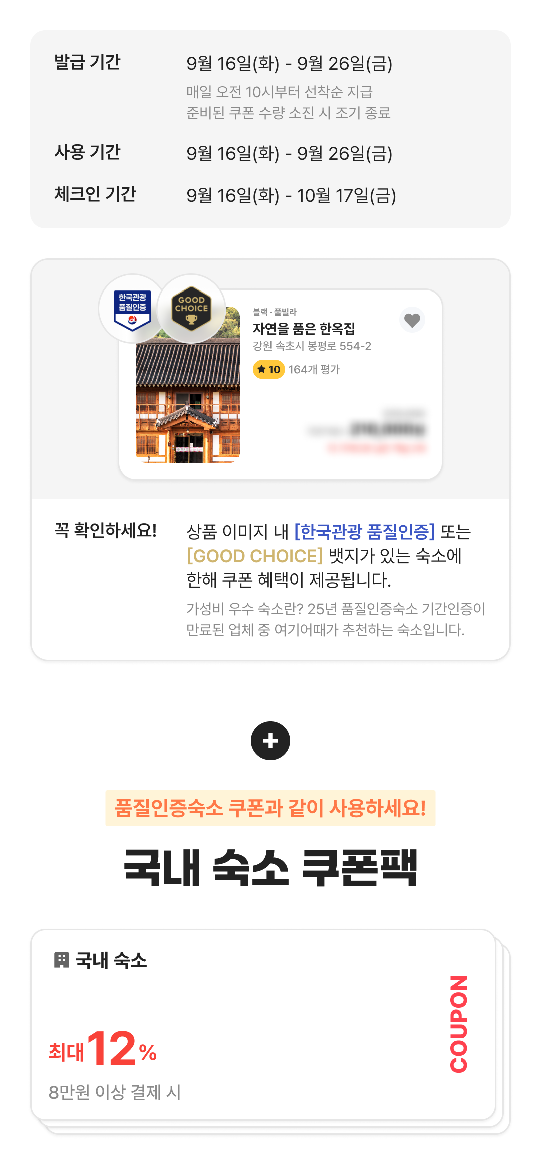 - [한국관광 품질인증]숙소 뱃지와 [GOOD CHOICE] 뱃지가 있는 상품에만 쿠폰 사용이 가능합니다.