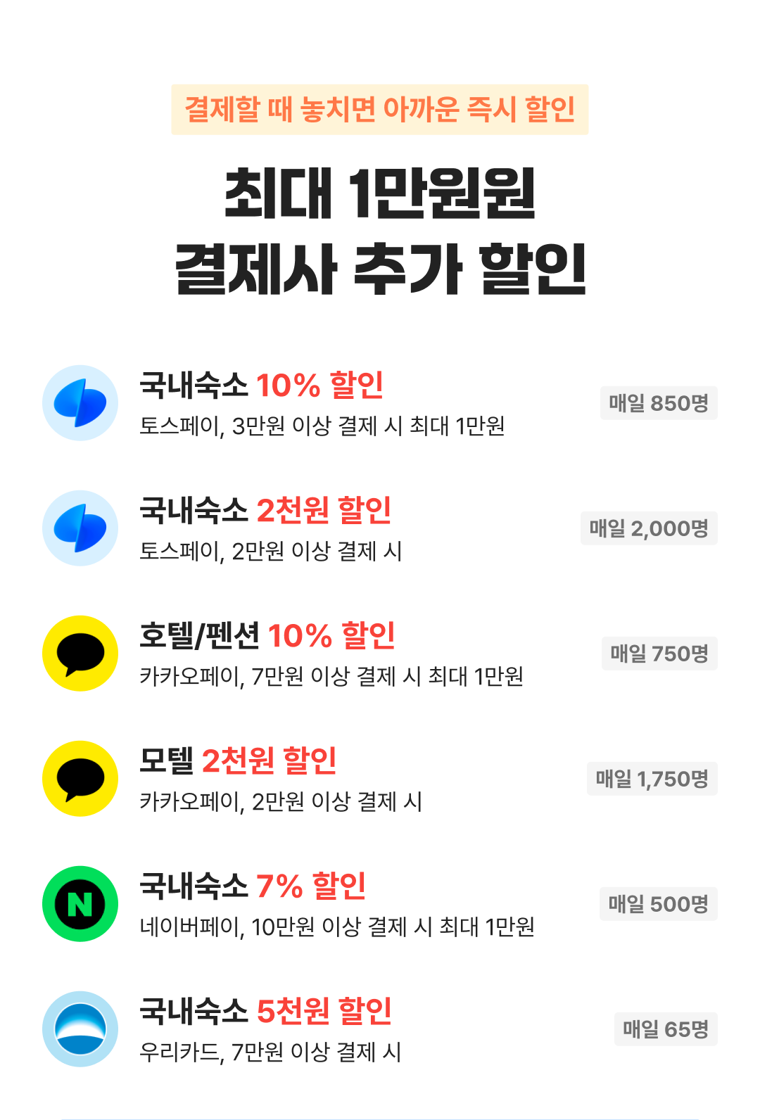 - 숙소별 제공되는 혜택의 세부내용은 각 숙소 예약 페이지를 확인하시기 바랍니다.